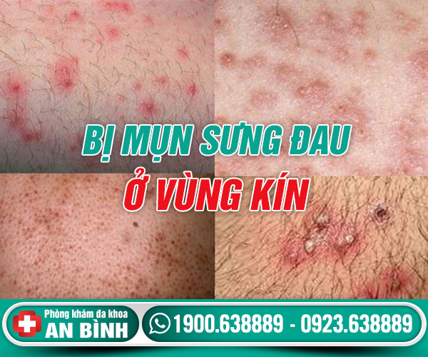 Mọc mụn ở vùng kín có thể xảy ra ở cả nam và nữ. Các nốt mụn có thể gây đau đớn hoặc không, nóng rát, có màu đỏ hoặc màu da, chứa dịch mủ bên trong, xuất hiện thành từng đám hoặc đơn lẻ,...