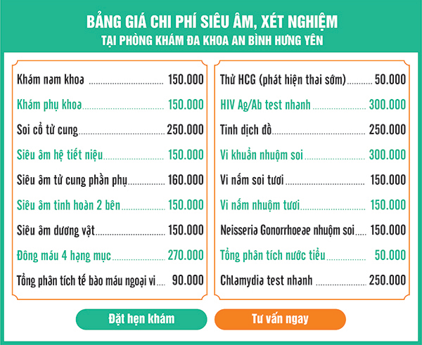 Các cặp vợ chồng đang có ý định khám chữa hiếm muộn thì có thể tham khảo từng khoản phí trong hạng mục khám chữa bệnh Tại Phòng khám Đa Khoa An Bình.
