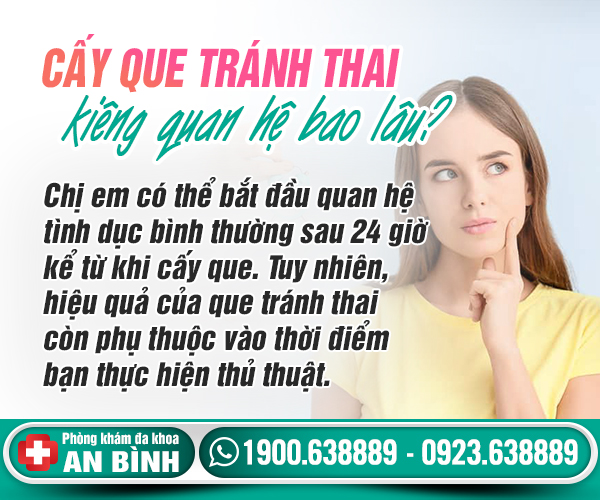 Cấy que tránh thai là một trong những phương pháp ngừa thai hiện đại và hiệu quả được nhiều chị em phụ nữ tin dùng. Tuy nhiên, không ít người vẫn còn băn khoăn về việc cấy que tránh thai kiêng quan hệ bao lâu...