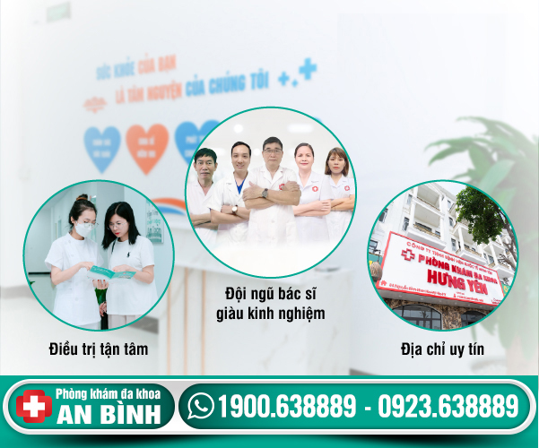 Phòng khám đa khoa quy mô lớn tại Hưng Yên, bạn không cần ra khỏi tỉnh vẫn được thăm khám bởi các bác sỹ chuyên gia tại Hà Nội. Tư vấn online 1-1 miễn phí, đặt hẹn trực tuyến dễ dàng, tiết kiệm thời gian và công sức, mô hình khám 1 bác sĩ- 1 bệnh nhân. Lựa chọn phòng khám đa khoa An Bình là sự lựa chọn đúng đắn cho sức khỏe của bạn .