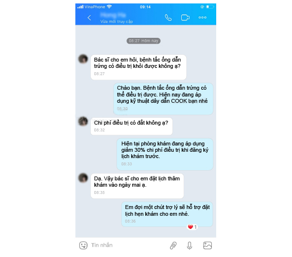 Phòng khám đa khoa An Bình đã tiếp nhận và điều trị thành công cho nhiều trường hợp bị tắc vòi trứng. Nhận được phản hồi tích cực từ phía bệnh nhân: