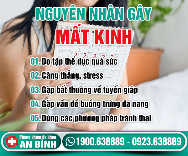 Trên đây là 1 số thông tin cơ bản về tình trạng mất kinh kinh, chị em có thể tham khảo. Nếu chị em có thắc mắc và cần được giải đáp thì xin vui lòng liên hệ với phòng khám đa khoa An Bình qua Hotline: 1900 638889 / 0923638889 để được các bác sĩ chuyên khoa tư vấn và hỗ trợ điều trị ngay nhé.