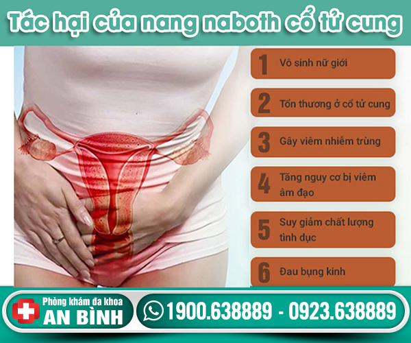 Nang naboth kích thước 4mm – 11mm nếu không được chữa trị kịp thời sẽ ảnh hưởng lớn đến đời sống tình dục và khả năng mang thai của nữ giới. Khiến chị em phải đối mặt với một số nguy hiểm như: