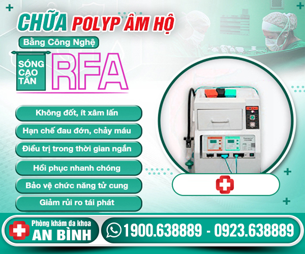 Phương pháp RFA điều trị polyp âm đạo, theo đó, các bác sĩ sử dụng nhiệt nội sinh từ các bước sóng cao tần, tác động trực tiếp và loại bỏ khối polyp bằng cách cắt lát mỏng. Thêm nữa, sóng cao tần RFA còn giúp tăng khả năng thâm nhập sâu hơn vào vùng nhiễm bệnh, đồng thời hạn chế gây thương tổn tới các tế bào lành tính lân cận.