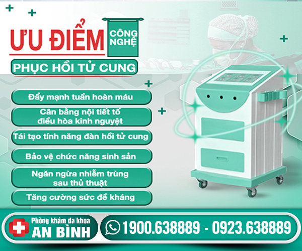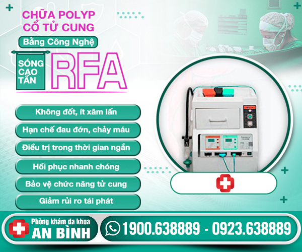 Hiện nay phòng khám Đa Khoa An Bình không chỉ ứng dụng kỹ thuật tiên tiến RFA điều trị polyp cổ tử cung. Mà còn ứng dụng phác đồ điều trị phục hồi tử cung hiện đại nhằm bảo vệ khả năng sinh sản cho các chị em.