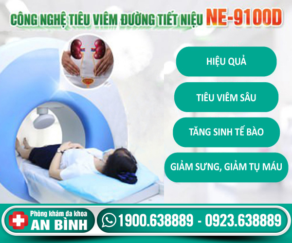 Tiểu buốt ở nam giới do viêm đường tiết niệu sẽ được chữa bằng Công nghệ tiêu viêm NE-9100D. Kỹ thuật này đặc biệt hiệu quả, các bước sóng sẽ khu trú đúng vị trí viêm nhiễm, tiêu viêm sâu vào các ngóc ngách tế bào nhiễm bệnh, khu trú tại vùng tổn thương. Hơn nữa, thiết bị này làm giảm sưng nề và tụ máu tại vùng tổn thương, tăng cường lưu lượng máu lưu thông.