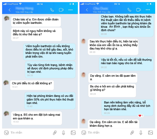 Phòng khám đa khoa An Bình đã tiếp nhận và điều trị thành công cho nhiều trường hợp bị viêm tuyến bartholin. Nhận được phản hồi tích cực từ phía bệnh nhân: